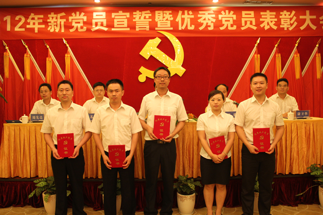 6月29日上午,中共米兰官方站网页版在线登入委员会2012年新党员宣誓暨优秀党员表彰大会在长沙隆重举行。大会在庄严的《国歌》声中开幕。党委全体成员、米兰官方站网页版在线登入全体党员、入党积极分子参加了会议。会议由刘健同志主持。