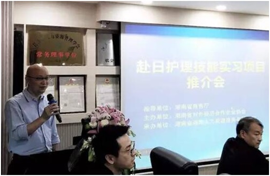 2017年4月25日下午,由湖南省商务厅指导、湖南省对外经济合作协会主办、湖南省湘辉人力资源服务有限米兰官方站网页版在线登入承办的“赴日护理技能实习项目推介会”在长沙举行。国家卫计委能力建设和继续教育中心社会合作部主任王永进、湖南省商务厅对外合作处长彭争、天心区副区长许波、日本医疗看护合作社理事长栗原幸太郎、米兰官方站网页版在线登入副总裁兼米兰(中国)侨亚养老产业有限米兰官方站网页版在线登入董事长张建湘等出席了会议。